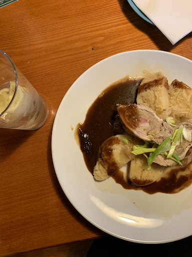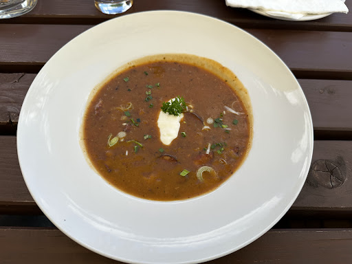 Read moreDobrý večer, dnes jsme byli na obědě v restauraci. Budu hodnotit pouze jídlo, protože kvůli tomu jsme zavítali. K obědu jsme si dali česnečku a kulajdu. Česnečka byla průměrná, chlebové krutony přímo v polévce asi záleží na vkusu, klidně by mohly být v misce, oukey. Ale to nic nemění na tom, že chlebové krutony nebyly čerstvé. Budiž... Ale kulajda psaná s "termální vajíčko" a nebylo dobře udělané, bylo to jako, když mi to vajíčko někdo klepne přímo do ne příliš teplé polévky a to nepovažuji za chutné ani bezpečné. Na kulajdě kousek pórku ? Další výběr našich jídel byl: krkovice, brambory a kukuřice, česnekový dip? Hovězí kulatá plec (snad si pamatuji), grilovaná zelenina, brambory s pažitkou a holandská omáčka. Krkovice byla strašně tuhá a moc ani nevoněla, zbytek na talíři v pořádku, nejlepší možná na tom byl ten česnekový dip. Druhé jídlo hovězí, prošpikovaná plec pravděpodobně dělaná na páře bez chuti a výrazu, pažitkový brambor jo, grilovaná zelenina dělaná (mrkev, paprika, pórek) hozená naráz na pánev tudíž pórek spálený úplně hořký, paprika méně hořká a mrkev úplně tvrdá, holandská omáčka přesolená.