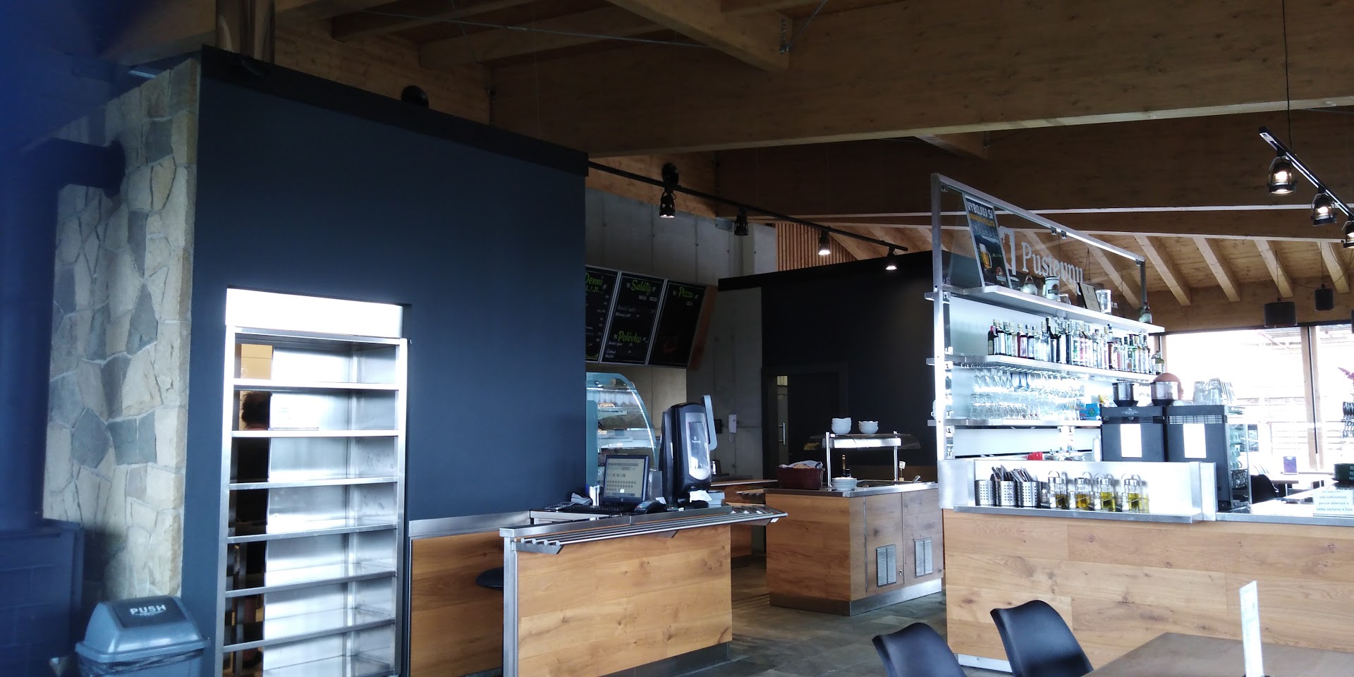 Read morePěkná současná architektura od Kamila Mrvy, drží se zdejší tradice stavění ze dřeva, ale pojímá ho moderními postupy s využitím velkých nosníků z lepeného dřeva. Interiér designově vybavený, i když je otázka, nakolik budou v tomto masivním provozu trvanlivé židle. Dobré jídlo i slušná káva. Výhoda je, že sem chodí méně lidí. Buď si sem ještě nezvykli chodit, nebo vyhledávají tradičnější místní občerstvení. Chcete-li jít i na WC, jděte před objednáním jídla a pití, 10 Kč za WC platí jako voucher...