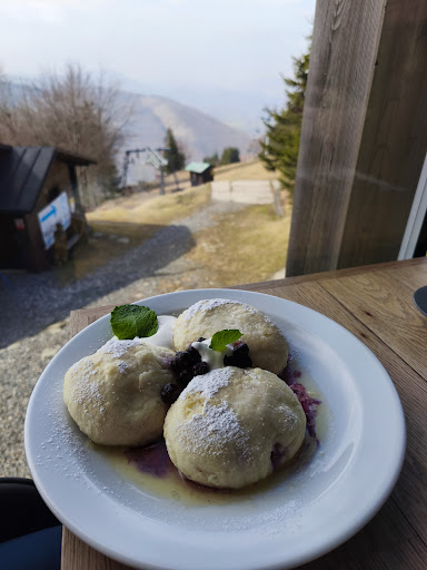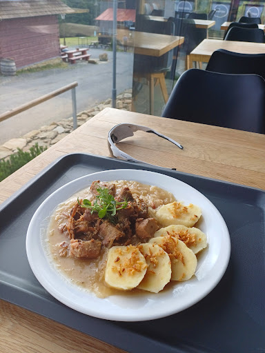 28.3.25 objednal jsem si borůvkové knedlíky s tvarohem, které jsem obdržel téměř okamžitě. Byly krásně nazdobené i s lístky máty. Těsto bylo výborné, tvaroh rozmíchaný se zakysanou smetanou byl skvělý, co ale nebylo vubec dobré byly borůvky, neboť byly bez chuti a nebyly ani moc dobré na zkus. Druhá objednané jídlo byly halušky, tak na ty jsem čekal velmi dlouhou dobu a v podstatě, když jsem dojedl knedlíky, tak jsme si mohli zajít pro halušky. Halušky byly výborné, dokonce bych řekl, že byly lepší než knedlíky. Co trochu mi vadilo, byl hodně tučný vysrážený špek, který mohl být kapku kvalitnější.
