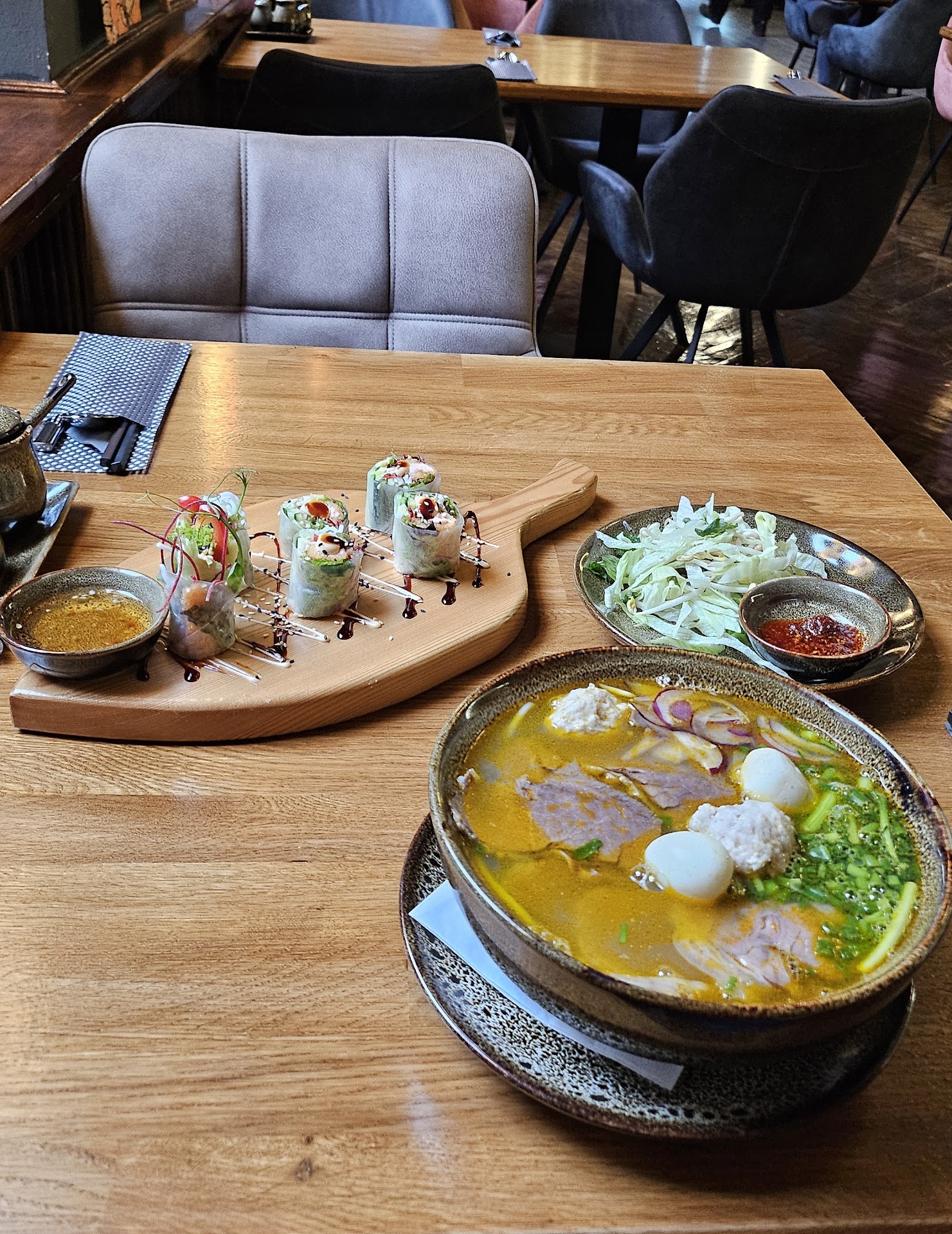 Read morePo delším plánování návštěvy této restaurace jsem se těšil, že ji konečně vyzkouším. Bohužel musím návštěvu celkové hodnotit jako zklamání. Prostředí je opravdu pěkné, ani výzdoba umělými květinami můj dojem nekazí (pro nás možná kýč, v Asii poměrně běžná věc). Obsluha byla navzdory všem předchozím recenzím milá a poměrně vstřícná (až na jeden prohřešek), ani jsme moc dlouho nečekali. Co nás ale bohužel nenadchlo, bylo rozhodně jídlo. Jako vegetariáni jsme se těšili na další možnost, kam o víkendu zajít na jídlo, protože jich v Olomouci není zase tolik. Tuto restauraci si ale na svůj seznam zřejmě nedáme. Objednali jsme následující: Smažené jarní závitky (vege) - téměř samé těsto a skoro žádná náplň Pad Thai s tofu - suché nudle téměř bez chuti, s pravým thajským má málo společného Cashew style s tofu - podle názvu i popisu jsem čekal, že v talíři najdu aspoň nějaké oříšky, ale k mému překvapení tam nebyl ani jeden! Po dotazu u obsluhy, odnesení jídla do kuchyně a jeho přinesení zpět přibylo v talíři několik zlomků solených kešu oříšků (netuším, kde je vyhrabali) a obsluha mě informovala, že na konci víkendu už kešu nemají a že jídlo je koncipované tak, že kešu jsou součástí omáčky. Ta byla ale naprosto čirá a po kešu nechutnala ani omylem. Takže: To jako vážně? Jediné plus bylo, že tofu v tomto jídle bylo asi nejlepší, jaké jsem zatím ve vietnamských restauracích v Česku jedl 👍 Poslední, co chci popsat, je onen zmíněný prohřešek obsluhy. K pití jsem si objednal nealkoholické pivo, podle nápojového lístku to mělo být 0,5l. Na stůl jsem ale dostal jen třetinku. Nedalo mi to a zeptal jsem se na to obsluhy. Naše číšnice to řešila postupně s několika kolegy, až přišla zřejmě manažerka s omluvou a informací, že nás na to obsluha měla upozornit předem a že za to "dostane za ušiska". A nabídka jakékoliv kompenzace žádná. Tak tomu říkám opravdu profi přístup... O to pivo nakonec vůbec nejde... Abych to uzavřel aspoň ještě jednou pozitivní věcí, dostal jsem 10% slevu na ten Cashew...