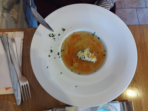 Quality of food very good. Steak was perfectly baked/fried less then medium well as I like. Impression that chef was maybe taking inspiration from top chefs as one can admire trying to design the dish on the plate. It is still though "on the way" if we compare from technics from the west. Pepper sause was ok, a bit lack of pepper taste - it could be as well archiduc sause if added mashroom. Saus would be best served separate in the small sauce pan with entire green peppers and a bit more quantity Food portions "just" enough. Soup in a lovely carbonara plate. So again idea probably more near to refined gastro then bistro.The minus for me is the paper menu which maybe with Archa (same owner) goes well, though here for such an ending price we would expect to get more upgraded (class) menu. Prices were missing in the menu, so don't fall down when you get a bill if you are used to eat somewhere else in Hranice. Wine was very good but pitty! that waitress never showed us a bottle or let us taste the wine first. (100kč one glass) Again if the price would be "common" I would not say a word (check the bill). Already with the higher standart more details would be nice to recheck. Restaurant in the modern - old style. Lamp cables outside is not my favorite though.We were alone eating but probably afternoon it is not the most busy time. However waitress very sympathic and food was served fast. But also we ordered easy 2 same dishes :) So a bit mixed feelings as for this price (and I go to many much more expensive restos around Europe) will expect a bit more care to detail or diminish prices. Overall good job as for such a...
