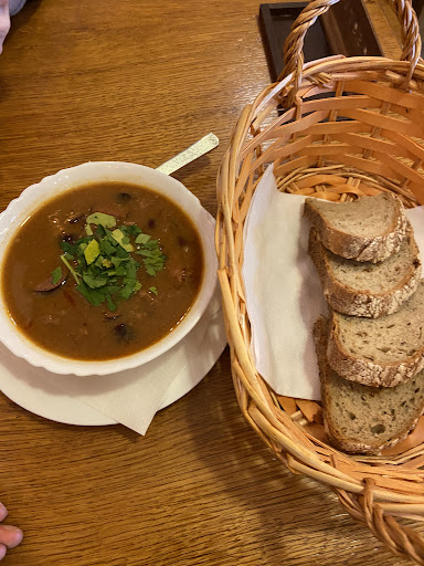 Hned zkraje nám sdělila, že “gulášovka” není k dispozici, což sice není neobvyklé, ale její podání tohoto sdělení bylo velmi neprofesionální. Po krátkém zaváhání jsme si objednali něco jiného a k tomu chtěli klasické české pivo – Pilsner. Na to nám však servírka se zdviženým obočím oznámila, že „Pilsner je tady sprosté slovo.“ Těžko říct, zda to měla být narážka na konkurenční značku, nebo prostě jen další bizarní moment našeho večera, ale rozhodně to nepůsobilo příjemně.