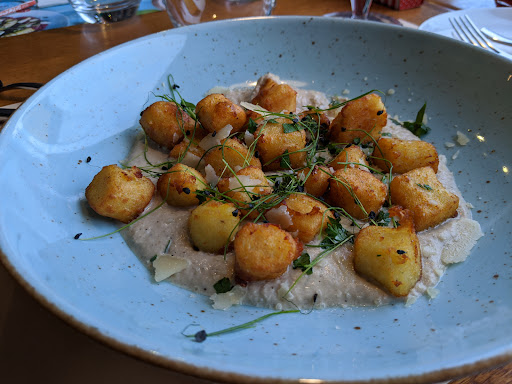 Read moreDali jsme si těstoviny ve smetanové omáčce s kuřecím masem a hovězí líčka s omáčkou na červeném víně, jako předkrm variace bruschett. Těstoviny byly jak kdyby je ohřívaly v mikrovlnce, omáčka ucházející, kuřecí maso asi 4 menší kousky - ve výsledku za ty prachy(cena přes 200Kč) děs, jako milovník těstovin si právě z těchto důvodů těstoviny objednám jen málokdo, zde už určitě nikdy. Hovězí líčka byly měkké, rozpadaly se, ale omáčka asi jen kolem vína tak nějak prošla, vůbec nebyla po víně cítit, natož chutnat, bylo k tomu petrželové pyré, které sníte jedním soustem, úplně bez nějaké další chuti, prostě jen petržel, ani sůl v tom nebyla, čips z petržele jako dekorace měkký, ani nekřupl, na doporučení k tomu pečené brambory, těm jednoznačně chyběla zase sůl, naštěstí byla na stole, ale u jídel za cenu 400-500 Kč očekáváte, že budou jaksi vymazlený. K pití ledový jahodový čaj a jejich limonádu, čaj bych já osobně raději sladší, limonádu za 99Kč bych asi servírovat do větší, vyšší sklenice. Abych to shrnul nejlepší na všem byl předkrm. Na konec jsme s manželkou usoudili, že jsme si měli dát pizzu a nějaký salát, to vypadalo lépe, než jídlo, které jsme si daly my, ale na to jsme neměli chuť. Co se týče obsluhy, tak k té nemám výhrad, snad jen poznámka k tomu, že když se ke stolu pro 4 osoby, usadí dvojice, bylo by vhodné zbylé 2...