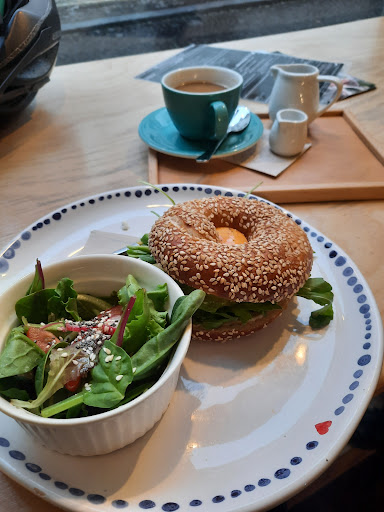 Jídlo - zklámání. Vitrína s dezerty skoro prázdná, ale asi to chápu, to jídlo vždy někdy dojde. Ale ta snídaně, salát vymáchaný v oliváči a posypaný semínkama bez chuti - žádné balsamico, sůl, cokoli. Ten olej vám teče po celém talíři a máte v tom vymáchaný celý bagel, takže vlastně jíte jen olej. Vajíčka vysrážený, neosolený. Affogato - zmrzlina se mi v kávě srazila, takže to vypadalo, jak když si do kávy nalejete zdrclou smetanu. Káva ale jako taková nechutnala špatně.