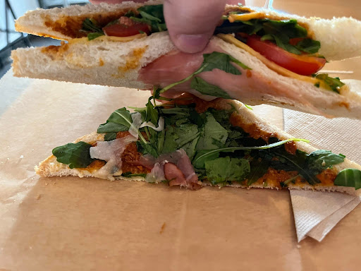 Atmosféra kavárny - zde se úplně nedá extra něco vytknout, prostě taková klasická hipsterská klasika, vevnitř útulný posez. Může to být pouze můj subjektivní dojem, ale doporučuji majitelům si zkusit sednout ke kávě nebo sendviči ke všem stolům a na všechny židle ve své restauraci. Možná by zjistili, že sedět na kusech betonu nebo ve školní lavici není úplně tak "fancy" a člověk si vychutná jídlo na normálním stole, kam se s talířem vejde a sedí se mu lépe v normálním křesílku/židli, aj. :) nicméně si myslím, že jde o trend této doby, čím blbější sezení, tím zajímavější podnik. Hvězdu spíš ubírám za ušmudlané, opatlané nápojové/menu karty na stole a za opravdu dost špinavý příbor.