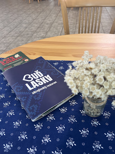 Read moreMožná to byla moc velká očekávání, možná má znalost ukrajinské kuchyně jak v domácím, tak v mnohém restauračním provedení, každopádně s lítostí nedávám plný počet… Ale popořadě. Došli jsme na oběd v neděli kolem druhé. Obsazeny byly asi 3 stoly a nikdo neobsluhoval. Než přiběhla paní, tak to 10–15 minut trvalo, říkali jsme si už, jestli neodejdeme… První špatný dojem. Na pití jsme vzali kvas (3/5, byl domácí, což je super, ale už „přešlý“, asi už byl starší) a kompot (tohle je chuť od baby Valji z vesnice, 6/5!!!), já měl velký hlad, tak jsem si vzal boršč. Ten byl velmi chutný a poctivý (4,5/5), k dokonalosti mi chyběly třeba domácí pampušky nebo sádlo – zpravidla je to velká obědová polívka… Jako hlavní jídlo jsme si oba dali kyjevský kotlet, no… od 3/5 u přítelkyně (velmi silná krusta, která skoro nešla rozříznout), po silné 4/5 u mě (krusta ok, chuťově dobré, ale nevím, trochu tam něco chybělo; ovšem byl to dobrý domácí kotlet). Škoda, že kotlety přinášeli už rozříznuté. Chápu kontrolu prosmaženosti před servisem, ale to kouzlo, kdy zákazník kotlet rozřízne a bylinkové máslo se rozlije, se ztratilo. I přes to, že jsme byli najedeni, jsme ještě zkusili syrnyky. Ty byly naprosto famózní, poctivé a domácí, lepší jsem snad ještě nejedl (6/5). Kdysi mimo tuto návštěvu jsem ještě v rámci cateringu vyzkoušel holubci, ty byly famózní (také skoro 6/5). Jídlo celkově až na problém s jedním kotletem a nedoplněním dalších věcí k boršči bylo velmi dobré, rozhodně v pásmu nadoprůměru i na UA standardy. Bohužel těch pár docela viditelných chyb mi nedovoluje, zvlášť když za projektem stojí Lidi z baru, dát...