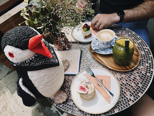 And get this: for everything—drinks, coffee, cake—for two people (and a little penguin friend), it all came to just 345 CZK (about €14). Total steal for the quality and experience.
