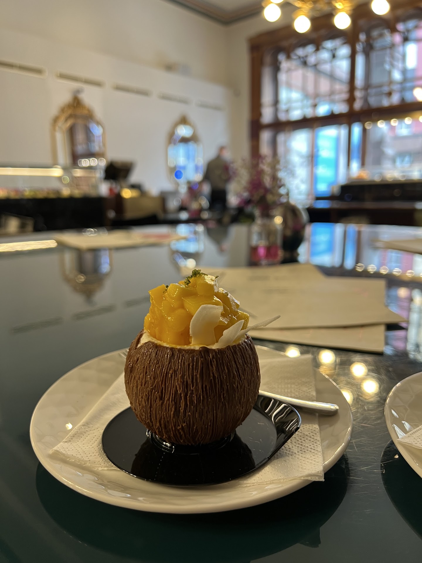 Read moreBased on the principle of not hurting business, I don't give bad reviews, if I didn't enjoy it, I won't come back. But only one principle will make me deviate from my rules and that is to cheat a customer. I bought the mango dessert, since there are no prices I asked the seller....she answered 180 I agreed and asked for T. A, I gave her 200 and got the excess, on the way out I counted the coins and saw that I got less so I went back and asked her again if the dessert doesn't cost 180? ....she answered yes and that they also charge a cost for the packaging itself.....a bit ridiculous especially as dessert costs 7€. And if I have already written a negative review, I will also mention that the dessert was bad with a very strong aftertaste, which made it...