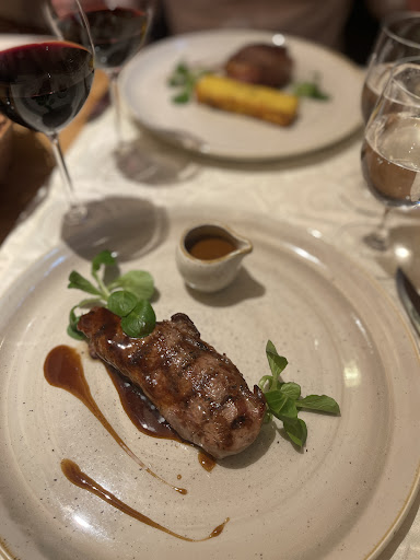 Read moreI was accompanied by two other friends, one of which wanted to eat out at a steakhouse. We were on vacation, and wanted to go to an extravagant restaurant, eat alot and have a good time. We started with an appetizer, the Carpaccio. This was absolutely delicious. The pesto and arugula worked well with the beef. During this we tried a wine (all of which were overpriced), but settled on a cheaper red wine. I would not recommend getting wine unless you wanted to spend a lot of money. I also bought a french ale which was light and perfect (and was more tasty then the wine). We all ordered steak, two of us ordered a medium-well (which was a bit under cooked), and one of us ordered a rare (which he fancied very well). The side dish of potatoes gratin was very good. Presentation on the plates was beautiful, and the steak itself was tender but not as heavenly as many other described. Lastly, we all wanted to try many of their desserts. We ordered the creme brulee, which was a large portion. The top sugar coat was very under cooked/caramelized and I found myself grinding grains of sugar in my mouth. I couldn't bring myself to finish it. We also ordered the liquid nitrogen frozen creme with raspberry sauce. The sauce was delightfully tart and sweet, the creme was not frozen all the way, and as a result was a bit too runny. It is quite a sight though- the waiter prepares this at your table. We all found our waiter fairly rude and elusive in times of need, until a generous tip was provided (not by myself), in which case the waiter suddenly was very friendly and treated us like we all were old pals. The major reason I removed a star was because my creme brulee was not well cooked and our waiter was rude and had to be flagged down with a force that made me feel like I was a international maritime signal flagger for a...