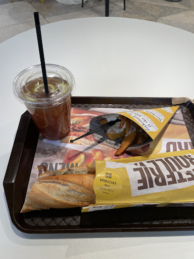 Read moreI think that Bageterie Boulevard is one of the best fast food chains here in Prague, this visit proved it again. The food was fresh and tasted good. I ordered Švýcarska bageta in menu, the baguette itself was crunchy and full of meat and cheese, patatas were warm, crunchy on the outside, soft in the inside and drizzled with bunch of sauce. Ice tea great as usual. I was pleasantly surprised by the new look, it has really cozy and urban vibe/aesthetic. Cashier was friendly. But I don’t think I found a Wi-Fi connection there, so that’s a minus.