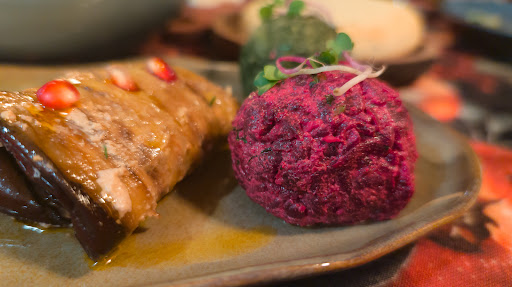 To start, we ordered the "Eggplants with Walnuts," featuring slices of eggplant elegantly seasoned with coriander, onion, and crushed walnuts. This appetizer offered a distinctive blend of flavors and textures, standing out as unique—something you wouldn't typically find elsewhere in Prague. While it wasn't exceptional, it was certainly memorable and satisfying.