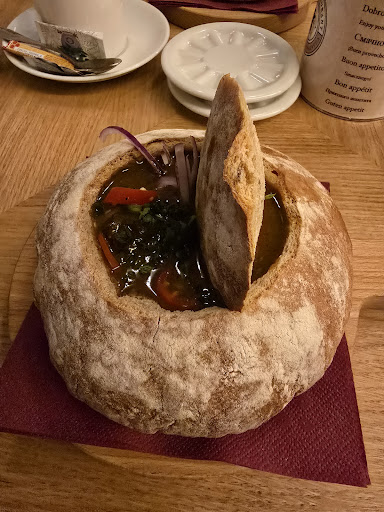 Read moreAn authentic small restaurant and lounge bar right in the center, the real Prague from the tourists' point of view. Frequented only by tourists, but not touristic! We liked it very much. Few dishes on the menu but typical of Czech tradition I had a soup of legumes and vegetables dipped in a loaf of bread deprived of the crumbs.