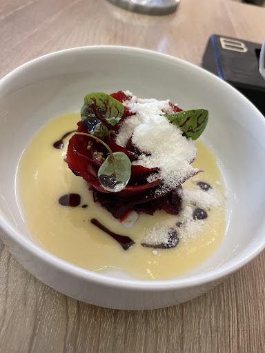 The first dish was probably my favorite from the 8 dishes and had a really interesting texture and overall composition and sauce The rest 7 dished were just awful. It tasted very basic. I only been 2 times in my life in fine dining, and it was a very pleasant experience with taste just rolling through your mouth with different tastes. A bit sour, a but sweet... then a hint on spices in the end, a hint of something else.. you take a bite and you're trying to figure out what is it you're tasting. Sometimes you taste a cabbage and it has a very unexpected taste and it really tickles your taste buds and makes you wonder how they prepare it. Here this was absolutely not the case. It was a straight forward tartar sauce and some deer meet for example. There was no pleasant mix of taste and something that makes you wonder how it all rolls around Most of the dishes had A LOT of vinegar and mustard. It was just so overpowering and weird.. it felt like a joke we were not in with my mom.. In other fine dining experiences they would tell a nice story how the dish came to be and why. Here it was dry description about ingredients
