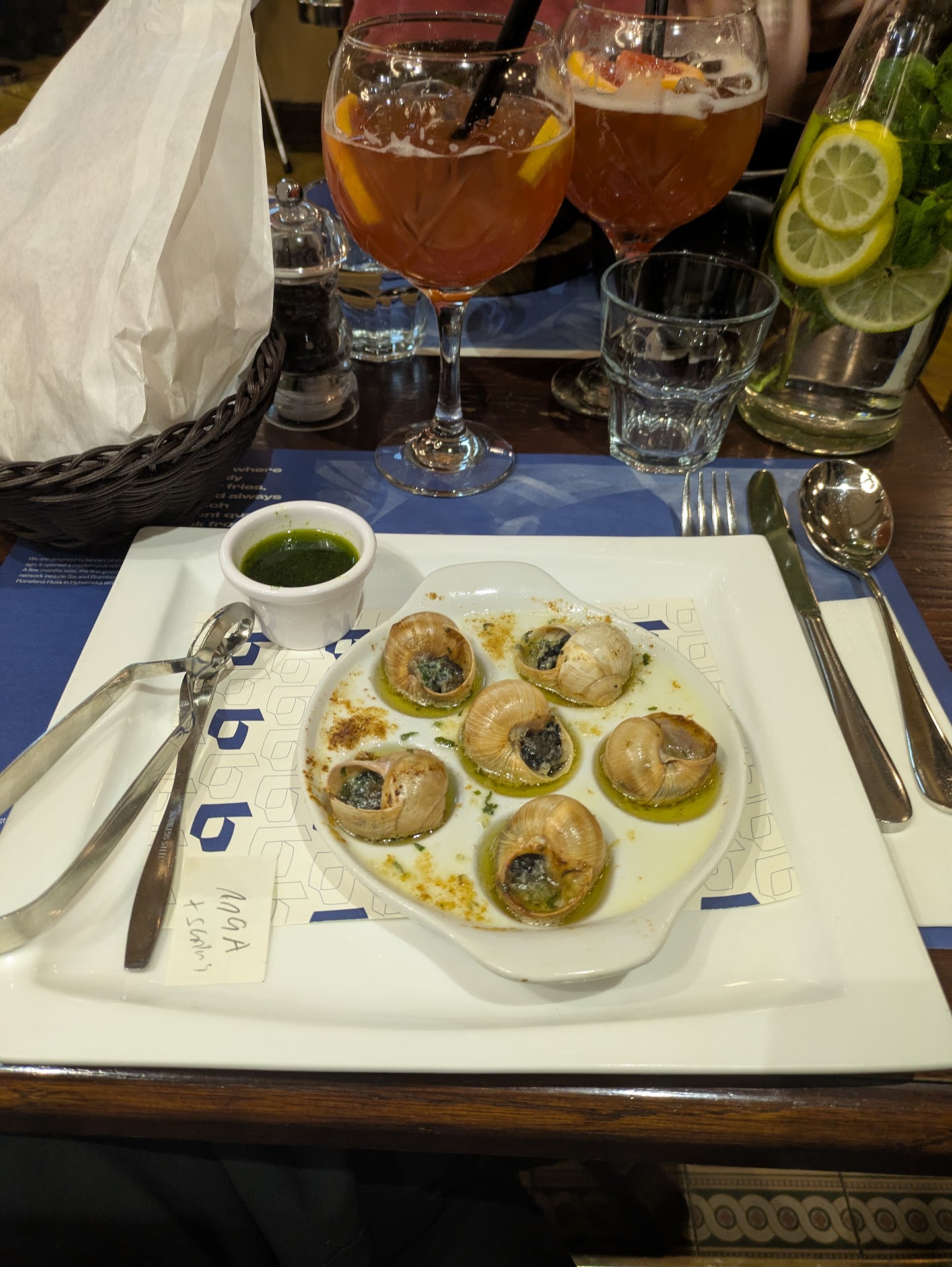 We had snails, that was pretty good, fried frog legs, good as well and nice Belgium beers. But when it came to soup and main dishes, it was beyond the level. The place is pretty expensive in Prague terms, so, I expected to more.