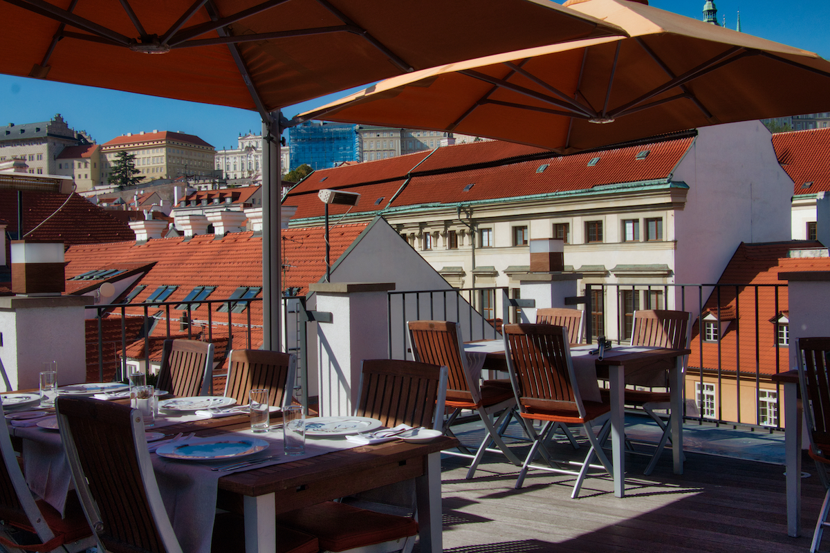 Perched on the rooftop terrace, Coda offers breathtaking views of the city, making every meal feel like a special occasion. From this vantage point, diners can overlook the historic city of Prague, enjoying the picturesque skyline while indulging in their meals.
