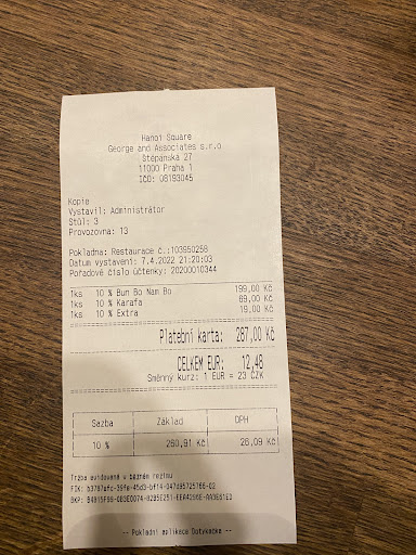 Read moreUnfortunately I have to rate this place with 1 star. I was really looking forward to have a good experience… The place the decoration looks very nice. But that’s not enough … Service is good, they are very kind and warm , however that’s not enough , especially when they take 1 hour to bring your food! 1 hour! And then , after 1 hour of waiting the food does not have any taste at all!!! What is worse …. After a terrible experience , 1 hour waiting + food no tasty at alll , when I go to pay: they charge me 19 cz crowns additionally for soy sauce ! In a vietnamita restaurant …. They charge me 20 crowns for soy sauce !!!!! That was the cherry on the cake👀