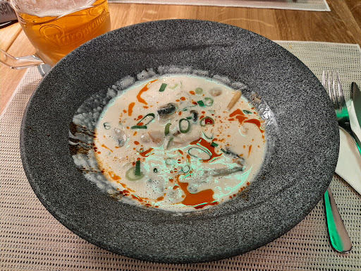 It took him roughly 45mins to let us order our STARTERS and main dishes. Now, I don't mind having a relaxed night out and waiting longer for the whole process, but imagine that paired with an insufferable manager that's servicing you. Also, I'm old enough to read and make my own decisions, I do not need the manager to tell me about all the recommendations he likes (I do not mind making a customer aware of a special offer or a chef's special dish though). At some point my margarita was empty and to avoid him talking at our table for 5mins again I went to the bar myself to order a beer and to order a main dish for our Czech friend, which did not get to order his food with the German manager. He told me at the bar how much he hates the foreigner wave back in Germany and how he is super proud of his naz* grandpa, who was in the "special forces" during a specific time in Germany. They are, according to him, "real and honorable men". He said he knew what he would do with all the imm*grants (line them up and .... them). If I wasn't with my friends, this would've been the point where I leave the hospitality. I do not need to know your political standpoint when I'm trying to enjoy a meal. It's nice to know though that they are outing themselves so future clients can avoid the restaurant.