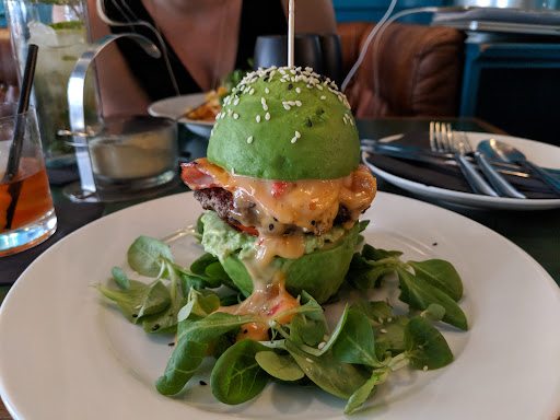 Food: I ordered an avocado burger. I expected a hamburger with avocado on it. I received a burger WITH AN AVOCADO FOR BUNS (see pictures). This concept is super creative and unique; it would take the urban US by storm. 10/10 for this creation.