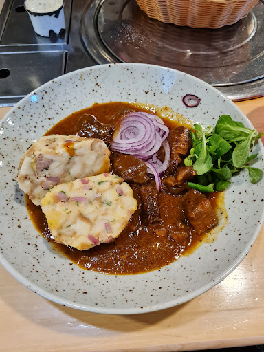 One of the main selling points of this restaurant is the "tank beer" which is the most fresh and tasties beer you can ever get - something worth visiting for! We did enjoy the perfectly served "mixed beer" also known as "rezane pivo" (combination of light pilsner type of beer and dark beer) and an appetizer in the form of beef tartar with bread and garlic. I am not a fan of tartar being already mixed, but I must say it was delicious, all the flavour was there, well balanced and the meat was very fresh! Even though it was listed as a 100 gram appetizer we were offered a bigger portion (150 gram) as it was meant to be for the two of us. The menu is quite extensive offering typical Czech delicacies such goulash, schnitzel or duck.
