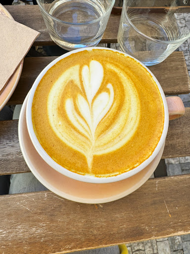 Read moreDuring my stay in Prague I went here twice. First time I tried the Pina Colada Cruffin (which might have been my favorite goodie on that trip) and a Chai Latte (which was sweet, spicy and cinnamony). Both great. Girl behind the counter was really kind. Sitting is inside and outside possible. The second time I went there just to get myself something for the way back home. 3 kilometers - one way - worth walking (in a beautiful neighborhood btw). The new carrot cake (vegan) was delicious. Soft and fudgy at the same time. Lots of hazelnuts, good amount of orange glaze (not too much) with pistachios on top. Price is alright for quality (spent 160 czk on my...