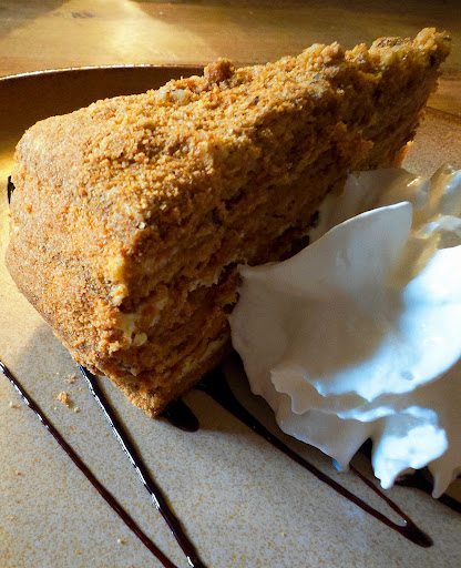 The beef goulash was served with potato pancakes, onion and ‘Knedlíky’, which the Czech refer to as dumplings. The goulash had a mild level of spiciness with a rich beef-spiced broth. It had noticeable flavours of paprika and caraway. The beef in the goulash was noticeably slow-cooked, but for too long. The potato pancakes were fried like hash-browns and had a delicious simple-potato taste. The dumplings tasted like a sweet dough, which was perfect for soaking up the rich-Czech Goulash.