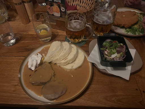 I was in this restaurant for 5 or 6 times. My last stay was very disappointing. Reservations are not possible, they rather cash up as much people in short time as possible. Last time we waitet for 45 minutes to get a free table. Even though there were 2 free tables but the personal was to lazy to clear an clean them up. The food comes until 10 minutes if you order one of the traditional czech foods, but its not fresh. Last time we wanted to order something from the category "grilled food" he said we have to order something other or have to wait at least 1 hour until we get the food. The taste and the portion is ok but little meat. He did`nt brought us ketchup, so we had to stand up and ask for some. He gave us very hot ketchup even though there were some normal ketchup bottles behind the bar. While we ate, they completely ignored us. Our glasses were empty but they did´nt ask if we want some more to drink. When we finished, we waited for more than 30 minutes to pay. We all looked at the Stuff but there was no reaction. They gave us the bill on a small Plate, it was 1000 kc, so we put there 1050. He came back and asked why we still didn´t pay so I didn´t understand the problem and said that we paid. (I talked to him in czech) So he looked at me and said "without service?" and I did not know what he wants from us. He asked from which country you are so I said Germany, so he said we have to pay at least 10 or 15% tips. He was really angry and grumpy (maybe because czech people think germans are very rich), took the money and only said "čus bus" which is a czech way to make a bad joke about germans.