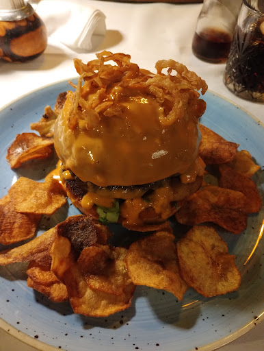 Next, we had to choose our meals (the selection was huge), and just as we were ready, Jarda appeared instantly (at the perfect moment). Despite the meal being quite complex, he brought our food in about 10 minutes. At one point, my brother had a ring of sauce on his plate, and Jarda joked, "Now, it's my moment," as he removed it, making the sauce spill over my Burger. He laughed a little (super charming). While we were eating, he checked on us several times, always asking very politely if we were doing well.