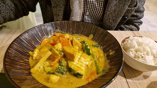 Read moreHad very mixed feelings while writing this review as i am still not sure how i feel about this place. On one hand it looks like a genuine vegan restaurant that cares about animals with a beautifully designed menu and beautiful goal. On the other hand, they put very little effort into preparing the meals and making a restaurant as comfortable as possible. First of all, they don't have any heating in the restaurant, zero, we wore our coats the entire time. We ordered starter, two main dishes and a drink. Meals were served very fast, however, fried cauliflower was watery and even cold from inside. It was rushed to be baked in oil and ended up fried from outside, partially raw from inside. Curry we ordered was below average, it was full of starch and didnt taste like proper curry, even though it had a lot of veggies. (we know how it should tasye, thank you). My Pho had good broth taste and veg meat was decent but there was nothing else to the soup except pieces of meat and noodles with water. Portion was huge so it was very disappointing to eat plain noodles with water... Finally, for the drink I ordered matcha shake but it came out fermented? Had very weird taste and l had to ask to bring something else instead. I got fruit smoothie which was better. In addition, in the past, I have ordered via wolt veggie burger with fries and tomato tofu, however, fries came to me soggy and inedible, veggie burger had a good setup of cheese and sauces with a bun, but the patty itself was very tasteless so I threw it away and used some of my own frozen... As for tomato tofu it was okayish, it was tofu puffs in the tomato sauce, nothing extraordinary. It wasn't tasty on second day, unfortunately. Summarizing all my experience, I cannot give them more than 3/5, food is below average for the prices they ask people to pay and i strongly suggest them to work on perfecting the food and drinks they provide, or atleast improve the restaurant and its coziness, make it warm, paint over the wall that has splashes and smudged on...