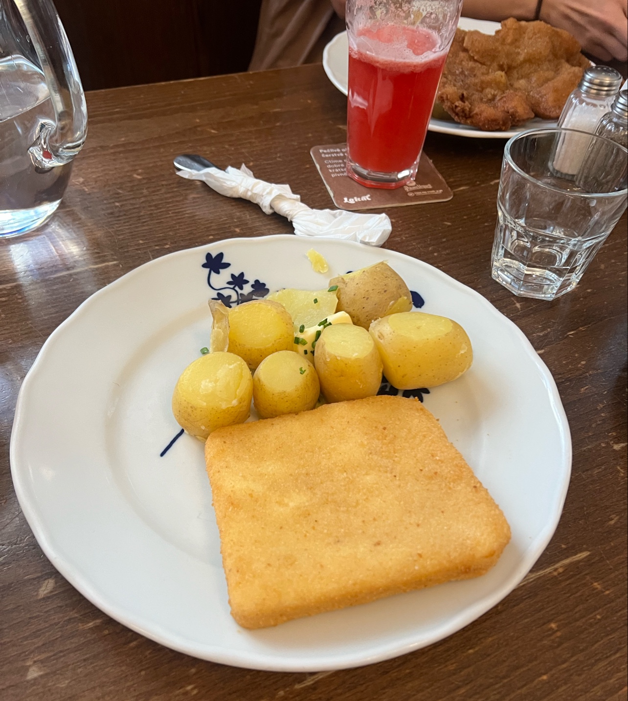 We went to Lokál Dlouhááá for dinner, and I would recommend reserving a table because we tried to walk in yesterday and couldn't get one, and people walking in had to wait about 40 mins as well. We had the beef dish, chicken with mushroom sauce and chicken, and pork schnitzel. I had the pork schnitzel, and while it was quite good, I felt like it needed a bit more seasoning, though maybe it was just me expecting something much more flavourful than what I got (I'm a tourist on holiday so maybe my preferences and what I think is good may not be what is the most traditional and correct tasting in terms of Czech food). The potato salad that came with it was very good, though my friend didn't like it as it was served cold but I don't mind it. The portion size was great, and we were definitely full after it. The beef dish was good, the beef was tender, and the bread dumplings were nice, though comparing it with my other experience at Pekny, I preferred the ones there (again I'm not a local so don't trust my word on what I think is better because maybe this is more authentic). though the cranberry sauce was overly sweet and tasted like whipped cream with cranberry sauce. We also ordered the raspberry beer lemonade, which was nice and wasn't too bitter or sweet. The atmosphere was decent, not much fancy decoration, and it was pretty much a big hall. The waiters were nice and allowed us to split the bill, which is kind of them. Overall, it was a good experience, not 5 star worthy...