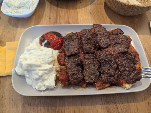 DO NOT BE FOOLED BY THE GOOD REVIEWS. My fiancé and I came here because we love Turkish food and it had great reviews. The red flag should have been that the staff was standing outside the restaurant almost as if trying to lure people in. My fiancé had what looked like shredded lamb and I had the Turkish meatballs. The shredded lamb tasted like it was old meat doused in oil and the meatballs had absolutely no flavor and also tasted like they were cooked in oil, we asked for Cajik in order to have some for of flavor added to the dish. We ate it because we did not want to be rude and had already committed to eating it, we asked if we could have it for take away and unfortunately they did not have to-go boxes, they also did not have half of the menu or starters on hand which should have also been a sign for us to leave. We ended up eating the food which was the WORST MISTAKE because I have now had food poisoning that has been persistent for the past 3 days. I am afraid due to being in a foreign country and I still have several days left on my vacation, However this persistent diarrhea and stomach ache is a HUGE cause for concern. Should have just kept looking to eat elsewhere, overall service was not bad, food was...