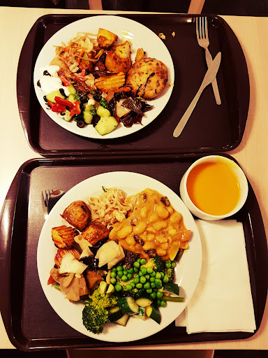 This place is great. 100% vegan food, and a variety of dining options. There is a buffet bar where you choose what you want and pay by weight (we didn't have this, but there was always a healthy queue, which made me think a) it must have been very good, and b) the hot food would not have just been sat under lights for ages as they seemed to be continually replenishing dishes.