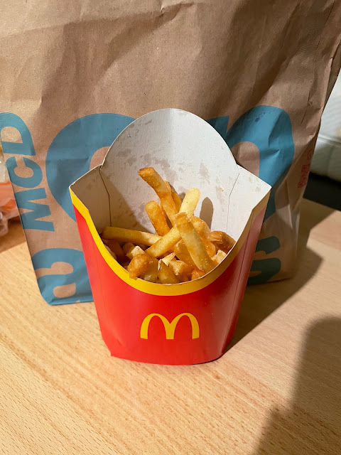 objednávka (konec 2024): snack wrap, double cheeseburger, smažák fresh, cheese king chicken, 2 jablečné taštičky a 2 taštičky švestka a skořice. Double cheeseburger chybí.