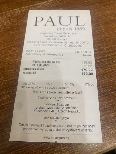 The WORST quiche I've ever had. Nasty, cold bits of anchovies stirred in with egg and spinach. I thought it was a spinach and cheese quiche. Then I went in for a bite and smelled rotten seafood. Took a bite, instantly gagged and proceeded to vomit. Will never go back to Paul in Czech republic ever again. The woman who made our coffee was mad at me because I was trying to inform her that the cups she had placed under the coffee machine were not in the correct location, so all of the coffee and milk poured directly next to the cup. She then hastily pushed more buttons, and I ended up with 8 euros worth of milk froth and disappointment. I can't believe I wasted my hard earned money here. Paul corporate needs better quality assurance because in France, Paul is a wonderful restaurant. NOT in Czech though.... Tisk tisk corporate....