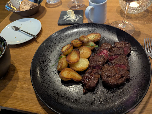 Read morewife and i had a first rate experience at portfolio. a nice place to be, spacious, quiet, fresh air, comfortable seats great service, friendly, passionate, knowledgable food was very good, i had a starter of blue fin tuna followed by a wagyu rib eye. my only slight criticism here way too much sauce and vegtables with the tuna i didnt agree with the balance here. the medium wagyu was perfectly grilled, just delicious, came with baked potatoes and a nice reduction personally the thing i am most excited about in a fancy restaurant like that is the wine, the resources and the expertise of the sommelier, and boy did they deliver... the tuna was paired with a riesling by eva fricke, very highly rated label at the moment and apparently not so easy to get, they were evidently pleased to have that on their wine list. the meat came with a 10 year old red which was also quite special. added bonus i loved to findjapanese nikka whisky on the menu which i like a lot, and which concluded the dinner. thanks portfolio for a wonderful...