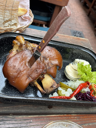 The pork knuckle was very disappointing. I thought my memory was wrong about how good they are. It was like boiled meet that I had to find from with a bunch of blubber with rubbery skin. My wife’s was also not good. We had two beers and two glass of wine and it was over 1,200 in Czech ( and I added a tip of 100 in cash not knowing how bad this was and they probably already charged the tip on My card)