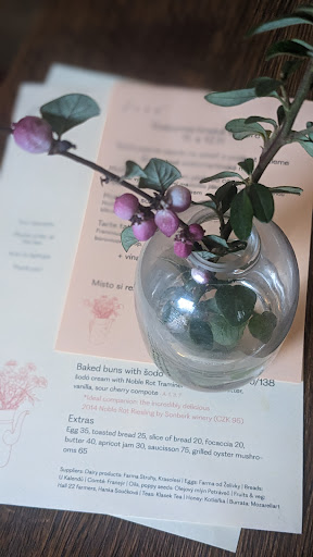 We liked the food, but for the price the amount felt insufficient. The ĆĄodĂł was a bit too alcoholic to my taste which was a surprise (I donât drink but normally enjoy pralines with some alcohol fillings, so sweet ĆĄodĂł with wine was a promising description). And with the cafe being so busy, we didnât feel comfortable or relaxed during our lunch. People were constantly popping in to ask for the availability, waiting outside in the cold looking through the window if we were done with our food. I felt sorry for making them wait. We left slightly hungry, somewhat guilty and with a feeling that the investment was not worth it.