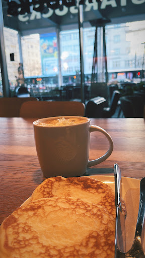 Read moreWhy do they serve coffee in plastic or paper cups? I ordered two coffees to enjoy there and I found myself drinking from a plastic cup. What happened to ceramic cups or glasses for latte? No spoons either? No table service? What's the point then of paying 100-125czk (4-5€)? At least the coffee tasted alright and the cashier was friendly, so 3 stars for that. But no reason to return,...