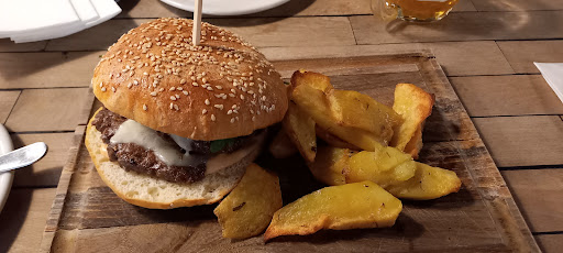 Since I am a burger lover, I was enticed by offered Italian variation of this meal with extra baked potatoes. I had high hopes of the promise of smashburger from selected beef. While we were waiting we had an appetizer in form of cheese selection plate with local bread and that was really nice!