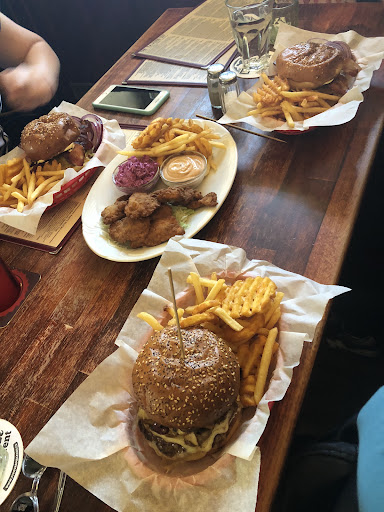 Great location by the park so customers can take their burgers away and enjoy it during warmer seasons. The restaurant is cosy and decorated like a tavern, pretty cool. Staff were young, friendly and checked on us frequently (by Czech standards). We went after the peak lunch hour on a weekday so it wasn’t too crowded. The burgers were delicious and portions were huge (typical Amerkcan style), but the done-ness was not consistent (my friend’s burger was a nice medium and mine was medium well). We also ordered the buttermilk chicken nuggets and they were savoury and nicely seasoned, with a generous serving of sauce and a side of purple cabbage coleslaw which was tangy and refreshing. The fries were a mix of regular fries, waffle fries and curly fries. We loved the latter two as they were extra tasty. Everything was fine and I was about to give the restaurant five stars until we ordered the brownie. It was more like a biscuit and we were pretty disappointed that it was not the soft, warm brownies we were used to. I’d still go back for the burgers and fries!