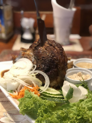 Please for the sake of ethics, don’t visit this establishment if you’re a tourist. They obviously do this to every tourist they see—when I entered I saw a poor couple abandoning half a knuckle each (which was a HUGE hint and I feel so foolish to have missed it). I should have seen this coming as there were numerous other reviews that gave a hint as to the practices of this place but I decided to check it out myself and deeply regret it. This place feels affordable because their price-to-meat ratio is great, but look at every other review and you’ll notice the staggering amount of people who said that their food was “too much” or “huge portion”. The huge portions are not a good thing, it’s a sign that they have consistently recommended overly large portions in order to get tourists to pay more. Please don’t fall for the trick?