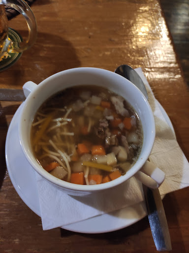Read moreNice evening we had here. It was a cosy little room with old decor. Why there is a sleigh hanging around I did not understand, but the various music instruments that were put on planks were well placed. Apart from this the furniture was rustic but not with too dark wood, which I liked.