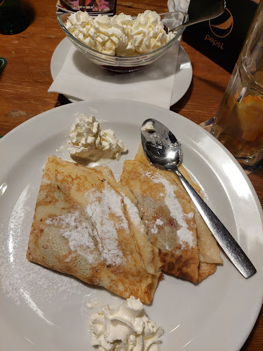 Additionally we ordered 2 desserts. We had the vanilla ice with whipped cream, which could have been more ice. We also had the palačinky qith hot red fruit mix. The pamcake from the palačinky was a bit oily, which is why the fruity taste was put back a little. All in all it was nothing exceptionally special but allright. The price was fair especially for the schnitzel. All in all we can recomend...