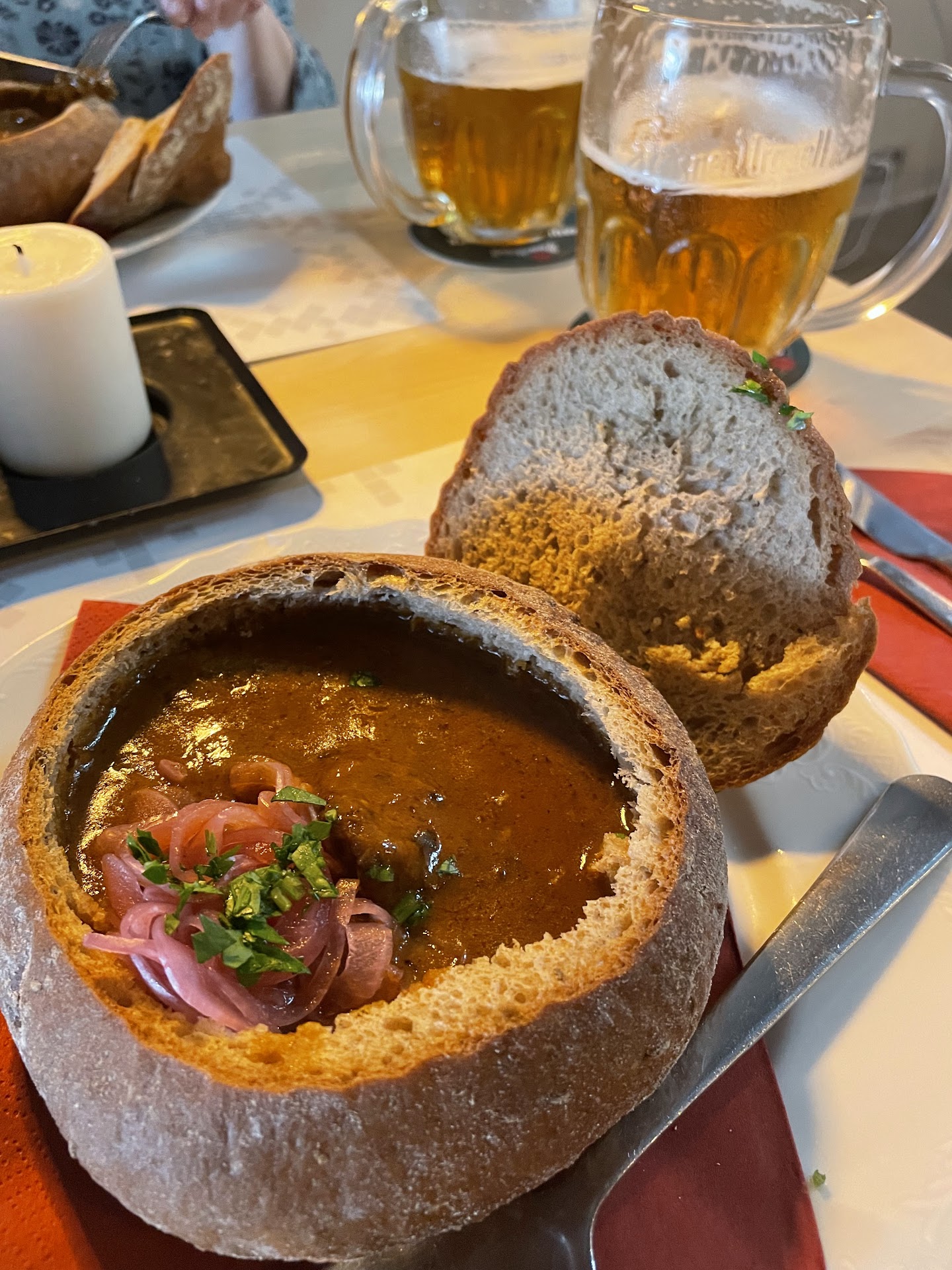 Read moreI was here with my partner in February 2023 for Valentine's day, and I came back here January 6th 2024 to celebrate a former classmate's birthday. It was a wonderful experience both times to me, although the second time we came we ended up having one more person to our reservation than we had planned, and the staff was evidently upset about it. I understand that it's upsetting, I was not in charge of the reservation and had I been in charge + had I known an extra person was joining, I would've let them know. However, having worked in the service industry myself I never ever ever would've made customers feel bad about such a small modification in a reservation. My former classmate was visibly embarrassed, and I felt bad for her. Aside from that, the food was wonderful just like it was in February, the Meat simply melts in your mouth, and the knedlíky 🤌🏼❤️ delicious. I'll...