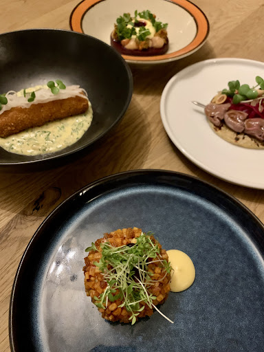 A must place to visit when in Prague. The restaurant offers an unique dining experience just outside city centre. Great atmosphere, friendly, caring and knowledgeable staff, sparkling clean restaurant. Menu is modern with some traditional components in combination with local produce and attention to detail you'll get an delicious art on the plate. The flavour combination of some dishes was unusual but surprisingly very well paired and played together just marvellously.