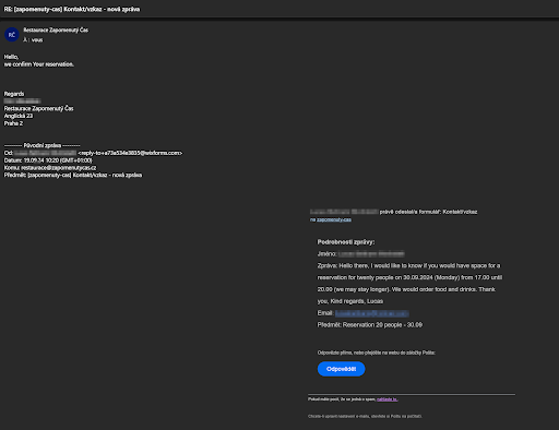 When I got there with another colleague at 5 pm, I informed a middle-age waitress with black hair in a pony tail (waitress number 1) that we had a reservation for 20 people and she said abruptly "NO", turned her back on us, and walked briskly to the bar. A younger blond girl with glasses (waitress number 2) came and, without even checking the email confirmation, stated that I was asked via email to confirm the reservation by replying to their email but, since I didn't reply in the end, they automatically cancelled it. I showed her the two-email conversation, being the last one the email where they confirmed my reservation and did not explicitly ask me to reply to it. She asked me if there were any other emails in my inbox, and I showed her that there were no others anywhere to be found. I also explained to her that it does not make sense that I confirm an already-confirmed reservation.