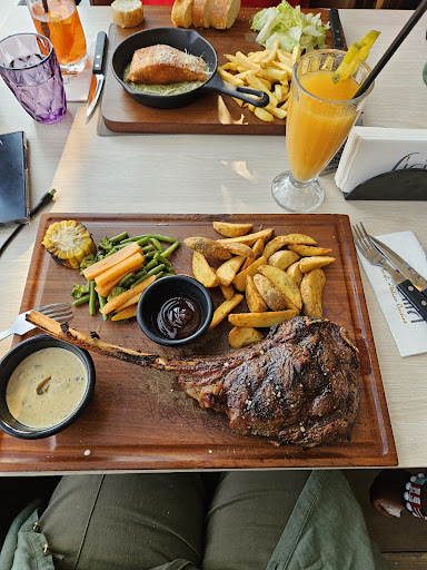 My husband ordered the T-bone steak, while I opted for the fish and chips, which were quite disappointing; I ended up only eating the fries and my husbands steak was excessively dry.