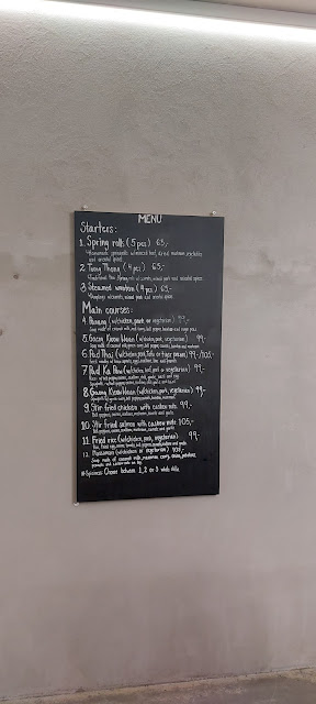 This is mostly a take out restaurant with a few seats avail bar style by the window. I decided to give it a try since they had veg/tofu options. I ordered panang curry with tofu. I wasn't sure of the spice levels so requested mild.