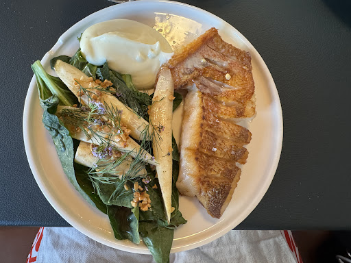 The restaurant is easy to reach via public transport - all main busses have stops within a 1-2 min walk. We picked and chose from the menu because we weren't super hungry. The bread was freshly baked and still warm. Portions are plentiful for the main course. I had a flatfish, and got the entire fish 😆. Dessert was definitely a highlight - the chocolate cake with passion fruit is incredibly good, definitely worth it being on the menu for 9 years straight!