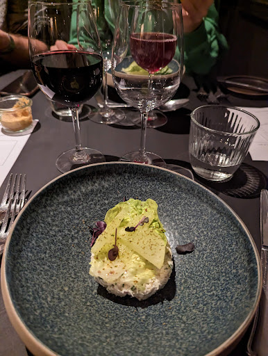The food here was absolutely delicious. You could feel the cooks knew what they were doing, and each dish was well-thought-out. We got both the vegetarian and the regular menu, and the vegetarian version was so good that it might’ve been better than the regular menu. They definitely got the different flavours perfectly balanced. The service wasn't that great. There was a long pause in service without us knowing, and some of the wine glasses seemed dirty. The waiters were alright, but they didn't seem interested in being there. Further, the atmosphere was okay but not anything special. Where we sat, we could hear yelling in the kitchen, which is never nice for a customer. This might just be unfortunate, but nevertheless, our experience. Overall, the food was the main attraction for the restaurant. If all you care about is the food, this place is...