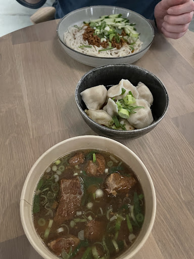 Udover det fik vi zhajiang, smagte super godt, og nudler med oksekÞd, som var helt fantastisk. Begge retter er oprindeligt fra Beijing og derfor mindre spicy end hvad man oftest finder i Sichuan-omrÄdet. Fordi de stÄr som sichuan pÄ menuen havde jeg mÄske forventet et stÊrkere twist - som med sichuanretterne pÄ Frederiks Plads. Det smagte nu stadig vildt godt, og heldigvis har de jo en god chiliolie stÄende :)
